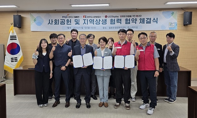 파주시 월롱면과 파주도시관광공사, LG디스플레이봉사단으로 구성된 '따뜻한 마음을 가진 봉사단'은 1일 '사회공헌 및 지역상생 협약식'을 갖고, 지역발전과 주민복지를 위해 협력키로 했다.