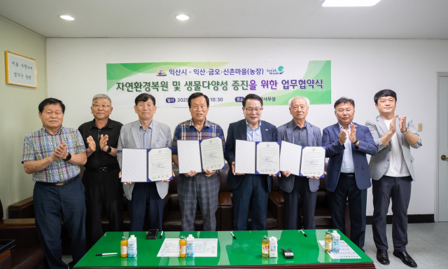 익산시는 2일 왕궁정착농원 내 익산·금오·신촌마을과 자연환경복원사업 추진을 위한 업무협약을 체결했다.