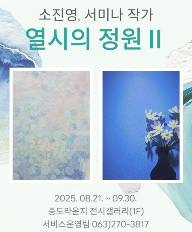 전북대 중앙도서관(관장 설동훈)은 오는 30일까지 중도라운지 전시 갤러리에서 소진영·서미나 작가의 ‘열시의 정원Ⅱ’ 전시를 개최한다.