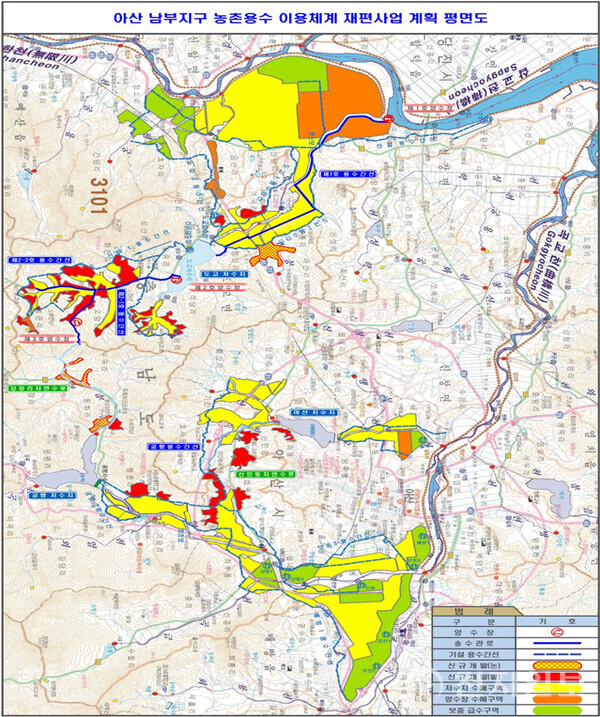 남부지구는 삽교호를 도고·송악·마산저수지와 연계해 배방읍과 송악·도고면, 온양동 일대 3259㏊에 농업용수를 공급하는 사업으로, 418억 원이 투입된다.