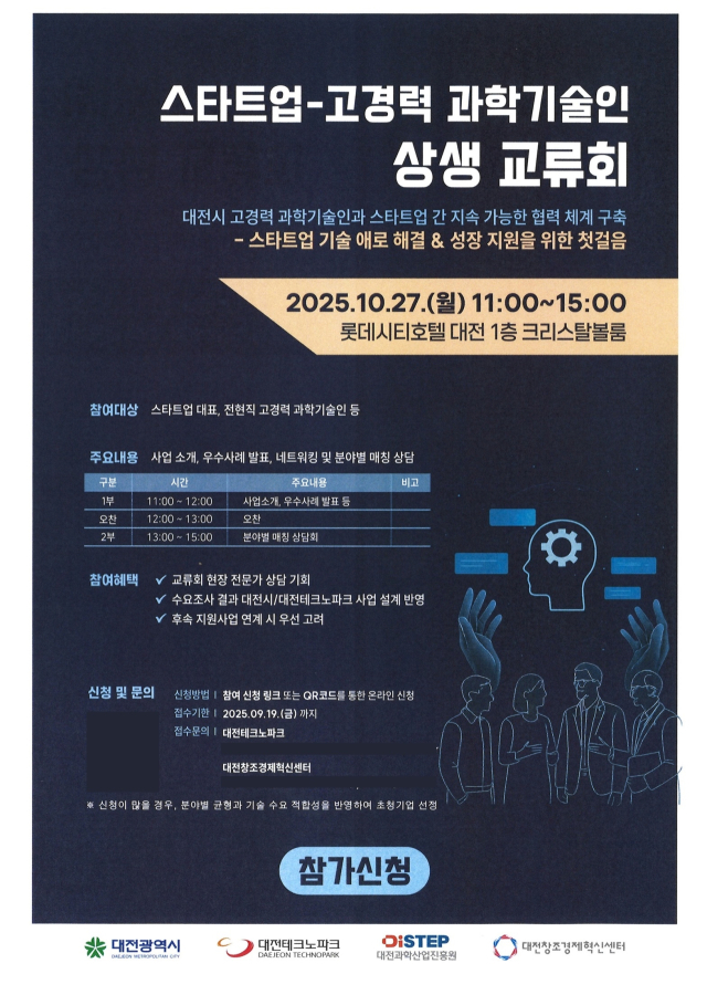 참여 대상은 대전 소재 스타트업이며 신청은 19일까지 홍보포스터 내 QR코드를 통해 가능하다.