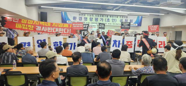 충남 천안시 동면 수남리 일대에서 추진 중인 사업장폐기물 매립시설 조성사업 공청회가 주민 반발로 중단됐다.