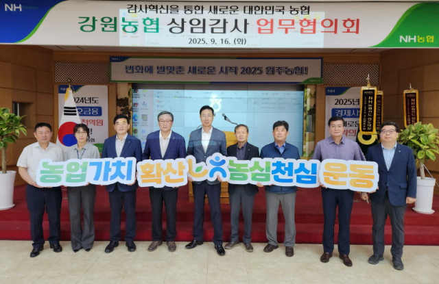 농협중앙회 강원검사국(국장 최상률)은 16일 원주농협 회의실에서 ‘2025년 3분기 강원농협 상임감사 업무협의회’를 개최했다.