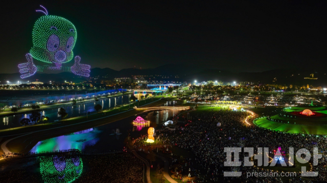 특히 시그니처 공연으로 꼽히는 '캐릭터 특화 드론쇼'는 전국 최대 규모이자 최장시간 퍼포먼스로 구성돼 더욱 주목할 만하다. 시 마스코트인 루미·뚱이와 지역기업의 IP는 물론, 국내외로 내로라하는 핑크퐁과 아기상어, 스머프, 벨리곰 등 다양한 캐릭터가 3000대 드론의 움직임에 따라 웅장하게 표현될 예정이다.