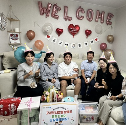 전북자치도 고창군이 올해 100번째 출산가정의 주인공인 심원면 조경식·홍지혜 부부의 가정을 방문해 자녀 탄생을 축하했다.