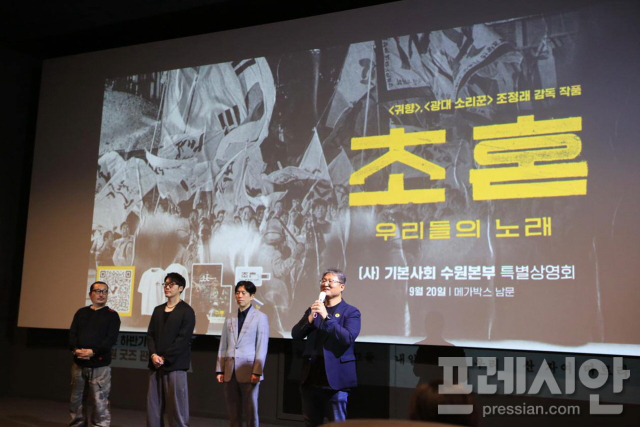 ㈔기본사회 수원본부가 영화 ‘초혼, 다시 부르는 노래’ 특별상영회를 통해 수원특례시의 미래를 위한 ‘함께’와 ‘연대’의 가치를 되새기는 시간을 마련했다고 21일 밝혔다.