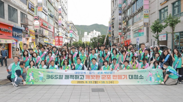 시는 일회성 행사에 그치지 않고 이날부터 다음달 1일까지를 ‘대한민국·경기·군포 새단장!!’ 주간으로 지정, 동별 취약지역을 중심으로 유관단체 및 주민이 참여하는 자율 대청소를 이어갈 예정이다.