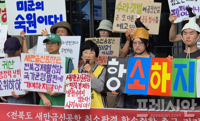 새만금신공항 백지화공동행동은 23일 오전 전북특별자치도청 앞에서 기자회견을 열고 항소 철회를 촉구했다.