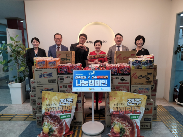 영경의료재단 전주병원과 (사)건강나눔영경후원회가 평화사회복지관에서 지역내 취약계층과 1인 가구 등 사회적 고립위험이 있는 시민들을 지원하기 위해 '전주 함께라면' 라면 기부 전달식을 진행했다.