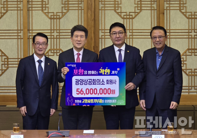 전남 광양상공회의소(회장 우광일)는 23일 경북 포항시청을 방문해 고향사랑기부제 교차기부금 5600만원을 전달하였다고 밝혔다.