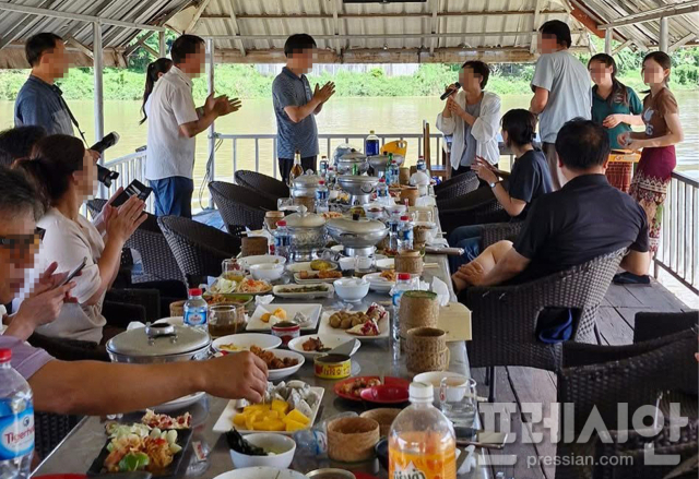 24일 <프레시안> 취재를 종합하면, 논란은 안동시,농협조합장들의 공무 이후 이어지는 관광에서 비롯됐다. 메콩강 유람선(크지도 작지도 않다) 위에서 벌어진 식사자리에 술병들이 보이고, 노래까지 부르며 흥겨운 자리를 즐겼다는 사실이 시민들에게 깊은 배신감을 주고 있다.
