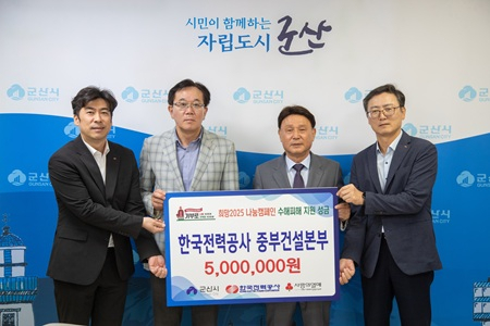 또한 24일 한국전력공사 중부건설 본부는 집중호우로 피해를 입은 군산시 저소득 취약계층을 위해 성금 500만 원을 기탁했다.