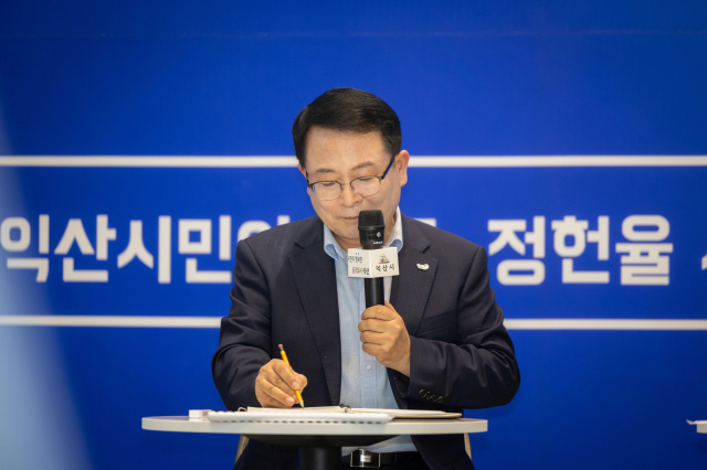 정헌율 익산시장이 이날 오후 익산시청 로비에서 지역 현안을 주제로 한 '타운홀 미팅'을 가진 자리에서 "기회가 있을 때마다 사과했지만 이 자리에서 다시 한번 시민들께 죄송하다고 말씀드리고 싶다"며 이같이 거듭 사과했다.