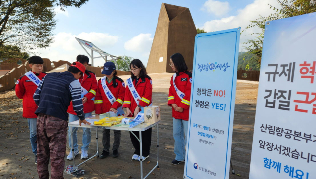 산림항공본부(본부장 김만주)는 추석 명절을 앞두고 공직사회 청렴문화를 확산하고 국민과 함께하는 건강한 사회분위기 조성을 위해 26일 원주 소금산 그랜드밸리 일원에서 ‘대국민 갑질 근절 캠페인’을 실시했다고 밝혔다.