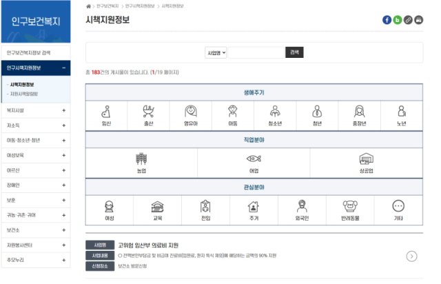 또한 ▶생애주기(주·부) 구분 ▶직업분야 ▶관심분야(일반) 등 맞춤형 분류 체계를 도입해 개인 상황에 적합한 지원사업을 찾을 수 있으며 ▶부서명 ▶팀명 ▶서식 유무 ▶첨부서류 등 행정 절차에 필요한 세부 정보까지 함께 제공된다.