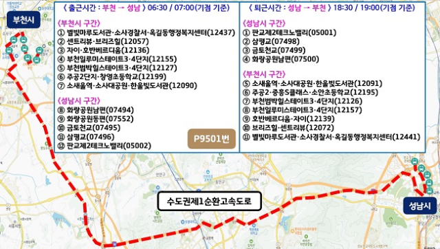 경기 부천시는 다음달 27일부터 부천 소사구 옥길동과 성남 판교 업무지구를 오가는 경기 프리미엄버스 신설 노선 ‘P9501번’을 운행한다.