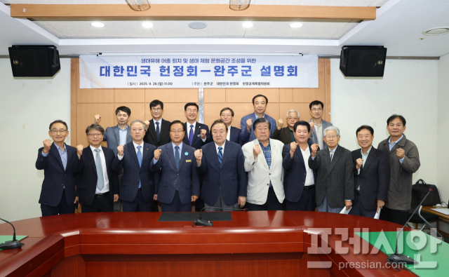 29일 완주군은 헌정회(회장 정대철)와 함께 유해어종 퇴치 및 생태체험 문화공간 조성을 위한 설명회를 열었다. 이번 행사는 지난 8월 업무협약의 후속으로, 유희태 완주군수와 정대철 헌정회장, 양오봉 전북대 총장, 유의식 군의장, 도 교육청 관계자, (주)하림 관계자 등이 참석했다.