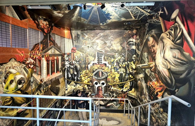 시케이로스는 실내 벽화의 경우도 노동자와 민중들이 삶의 현장에서 매일 볼 수 있게 했다. 다시 택시를 타고 북쪽에 있는 멕시코전기 노조사무실로 향했다. 우리의 한국전력 노조 비숫한 이 노조 사무실에는 시케이로스가 그린 명작이 있기 때문이다. 그는 정부 건물이나 박물관에 그린 리베라나 오로스코의 벽화를 '관제 벽화'라고 비판하고, 민중의 일상적인 생활 현장인 노동조합 사무실 등에 벽화를 그렸다. 노조 사무실에는 시케이로스가 그린 거대한 벽화가 나타났다. 노조 사무실에 세계적인 화가의 벽화라니 잘 믿기지 않는 '초현실적'인 광경이었다.