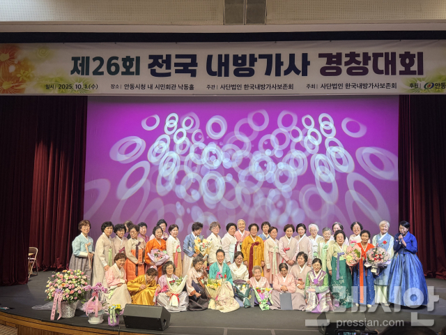 한국내방가사보존회는 1일 안동시민회관 낙동홀에서 ‘제26회 전국 내방가사 경창대회’를 개최했다. 이번 대회는 (사)한국내방가사보존회가 주최·주관하고 안동시가 후원했으며, 창작과 낭송 부문에 총 100여 편의 작품이 출품돼 전국 각지에서 참가자들이 열띤 경연을 펼쳤다.