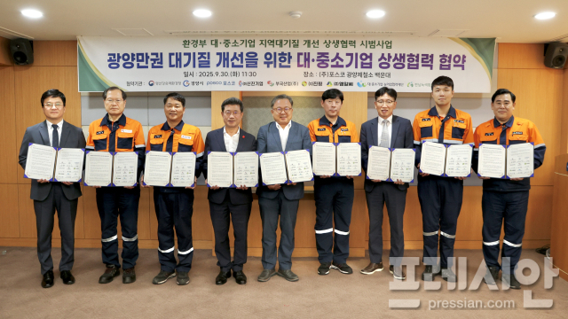 2일 광양제철소와 광양시, 영산강유역환경청에 따르면 지난달 30일 포스코 광양제철소 백운대에서 환경부 주관 '대·중소기업 지역대기질 개선 상생협력 시범사업' 상생협약 체결식이 열렸다.