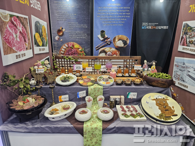 2일 군에 따르면 전날 부터 열린 '남도국제미식산업박람회'에서 군은 시군 대표 음식 전시경연에 참여해 지역 농특산물을 다양하게 활용한 요리를 선보였다.
