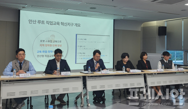 도교육청과 안산교육지원청은 13일 경기테크노파크에서 정책브리핑을 열고 ‘안산 루트(Route & Root) 직업교육 혁신지구’ 운영 현황 및 향후 계획을 발표했다.