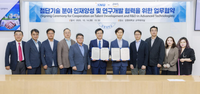이날 협력식에는 정재연 강원대학교 총장과 윤정원AWS 코리아 공공부문 대표 등 양 기관 주요 관계자가 참석했으며, 앞으로 양 기관은 인공지능(AI)과 빅데이터 등 첨단기술 교육의 기회를 확대하고, 미래 핵심인재 양성을 위해 긴밀히 협력하기로 뜻을 모았다.