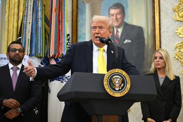 ▲ 15일(현지시간) 도널드 트럼프 미국 대통령이 백악관에서 기자회견을 하고 있다.ⓒAP=연합뉴스