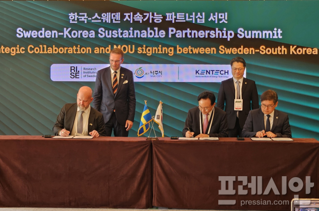 16일 시에 따르면 이날 서울 그랜드 하얏트 호텔에서 열린 '한국·스웨덴 지속가능 파트너십 서밋'에서 스웨덴 국립 연구기관 RISE 연구소 및 한국에너지공과대학교(켄텍)와 함께 '전력반도체 및 에너지 첨단산업 협력체계 구축'을 위한 업무협약을 체결했다.