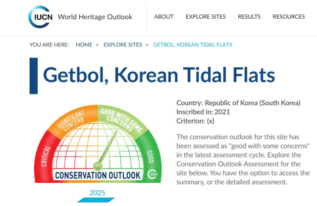 세계최대 환경단체 연합인 세계자연보전연맹(IUCN)이 최근 발간한 보고서에서 한국 갯벌의 보전 전망에 대해 "양호하지만 일부 우려(Good with some concerns)"가 있다는 평가를 내놓았다.