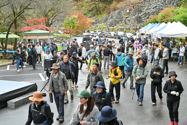 오전 10시부터 진행된 트레킹 대회에는 700여 명의 주민과 관광객이 참가해 항골계곡에서 제2용소까지 이어지는 왕복 6.8km 숲길을 걸으며 가을의 정취를 만끽했다.