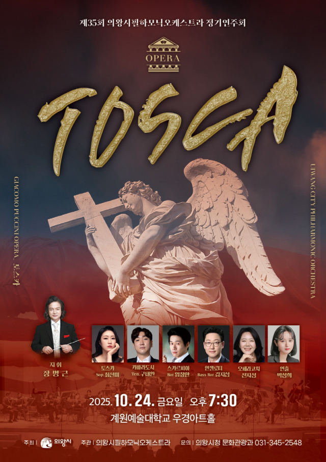 20일 의왕시에 따르면 이번 정기연주회에는 이탈리아의 위대한 작곡가 ‘자코모 푸치니(G. Puccini)’의 3대 걸작 오페라 중 하나인 ‘토스카(Tosca)’가 무대에 오른다.