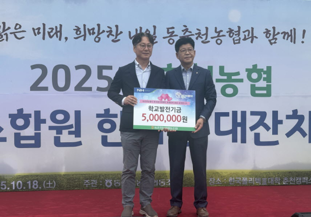 이번 행사는 조합원과 지역주민이 한자리에 모여 화합을 다지는 지역 축제로, 동춘천농협은 이날 대학발전기금 500만 원을 전달하며 지역 교육지원과 청년 기술인재 양성에 힘을 보탰다.