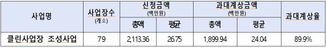 더불어민주당 안호영 의원(국회 기후에너지환경노동위원장·전북 완주·진안·무주)은 21일 고용노동부 산하기관 국정감사에서 “올해 클린사업장 조성사업 지원 사업장 중 판매업체와 담합해 보조금을 부정수급한 사업장이 총 79곳에 달한다”고 지적했다. 이들이 신청한 보조금 총액은 21억 1336만 원이며 이 중 공단이 추정한 부정수급액은 약 18억 9,994만 원으로 무려 89.8%가 부풀려진 셈이다.