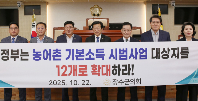 장수군의회(의장 최한주)는 22일 본회의장에서 정부가 이틀전에 발표한 농어촌 기본소득 시범사업 최종 선정 결과와 관련해 "1차 선정된 12개 전체 지역으로 확대 지정해야 할 것"이라고 촉구했다.