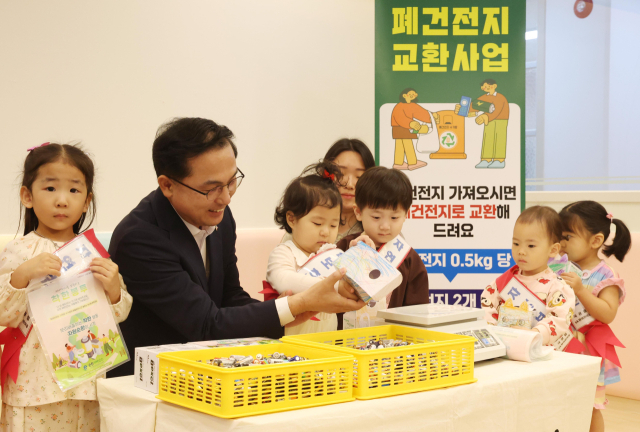 참가자들은 가정에서 가져온 폐건전지를 수거함에 직접 분리 배출하고 0.5㎏당 새 건전지 1세트로 교환하는 체험을 했다.