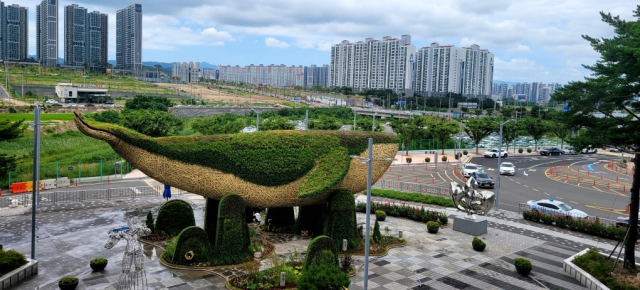포항경주공항 앞에는 도시의 상징인 ‘등대’를 형상화한 꽃탑이, 포항역 광장에는 해양 생태를 상징하는 ‘고래’ 모양의 꽃탑이 세워졌다.