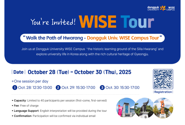 동국대학교 WISE캠퍼스는 2025 APEC 정상회의의 성공 개최를 기원하며, APEC 방문객 및 지역 시민을 대상으로 캠퍼스 특별 프로그램 ‘WISE Tour(와이즈 투어)’를 운영한다.