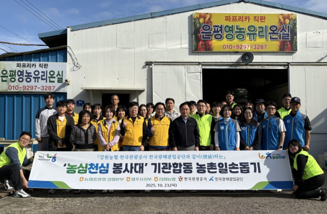 농협중앙회 강원본부(본부장 김경록)는 원주시지부(지부장 김주석), 신림농협(조합장 이남영), 한국관광공사(사장직무대행 서영충), 한국광해광업공단(사장 황영식)과 23일 원주 신림농협 조합원 농가를 찾아 파프리카 농장에서 잡초 제거 등 기관합동 농촌일손돕기 활동을 실시했다.