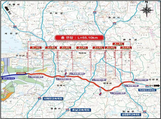 총사업비 2조7424억 원이 투입된 이 도로는 완주에서 새만금까지 이동 시간을 76분에서 33분으로 단축시켜 ‘30분 시대’를 연다. 서해안선과 호남선, 익산장수선 등 주요 간선도로와 연결돼 전북 내륙과 서해안을 잇는 교통망의 핵심축으로 자리 잡을 전망이다.
