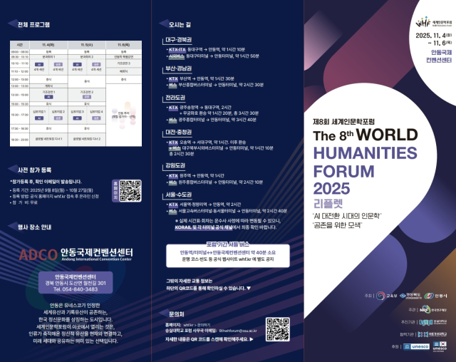 시는 이번 포럼을 통해 학문적 논의뿐 아니라 안동의 인문 정신과 전통문화를 세계에 알리고, 시민이 인문학의 가치를 보다 쉽게 체감할 수 있는 계기로 삼는다는 계획이다. 또한, 참가자들을 위한 지역문화 투어와 유교문화권 탐방 프로그램도 함께 운영해 지역경제 활성화에도 기여할 것으로 기대된다.