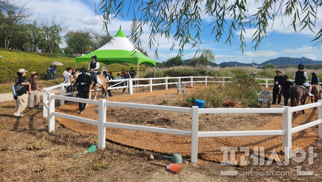 전남 순천시(시장 노관규)는 한국마사회와 협업해 오는 11월 1일부터 3주간 매주 주말 순천만국가정원 내 스페이스브릿지 하부 동천변에서 무료 승마체험 프로그램을 운영한다고 30일 밝혔다.