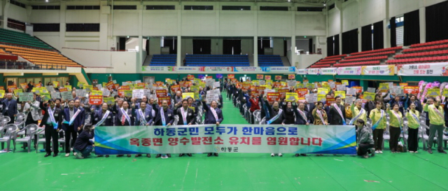경남 하동군은 31일 하동군 실내체육관에서 '옥종면 양수발전소 유치 군민 결의대회'가 열렸다고 밝혔다.