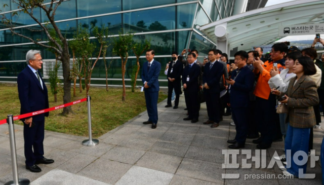 황 CEO는 밝은 미소로 보안검색대를 통과한 뒤, 주차장에 대기 중이던 의전 차량에서 내려 시민들이 모인 곳까지 약 50m를 걸어와 “환대에 감사하다. 너무 좋은 선물을 받은 것 같다”고 인사를 전했다.