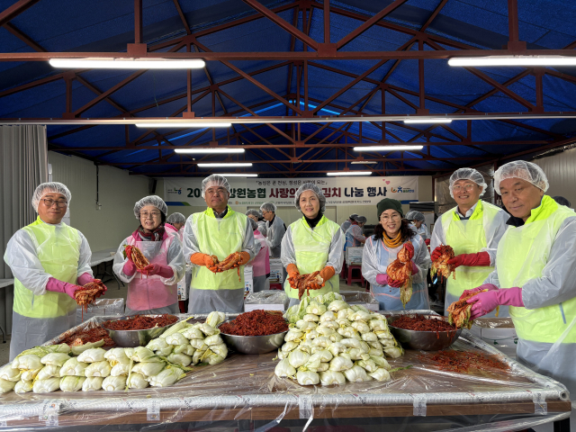 농협중앙회 강원본부(본부장 김경록)는 4일 춘천 원평팜스테이마을에서 도내 취약계층을 위한 ‘사랑의 김장김치 담그기 및 나눔행사’를 했다.