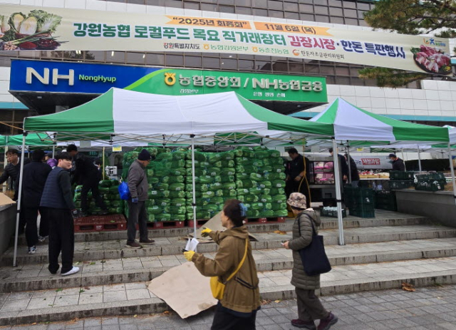 강원특별자치도와 농협강원본부(본부장 김경록), 동춘천농협(조합장 정종태)은 농산물 판매에 어려움을 겪고 있는 농가를 돕고 김장철 지역농산물 판매 확대를 도모하고자 6일 농협강원본부에서 ‘2025년 강원농협 로컬푸드 목요장터 김장시장’ 을 운영했다.