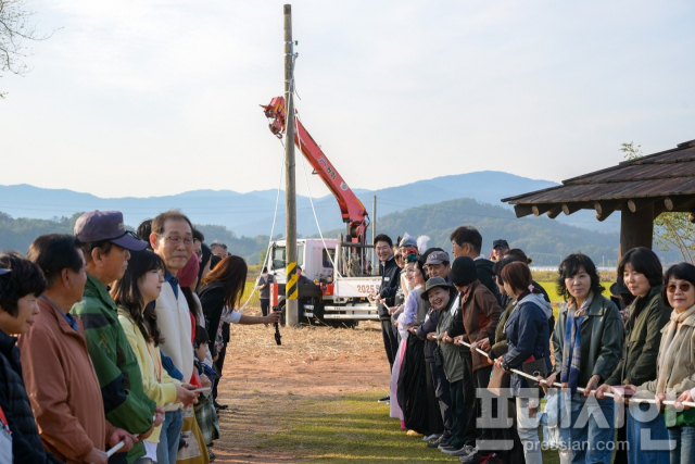 이날 진행된 전봇대 철거 행사는 2009년 세계 최초로 순천만 농경지 내 전봇대 282개를 제거해 62㏊의 흑두루미 서식지를 조성했던 순천시의 과감한 정책적 결단을 재현하고 그 의미를 되새기기 위해 기획됐다.