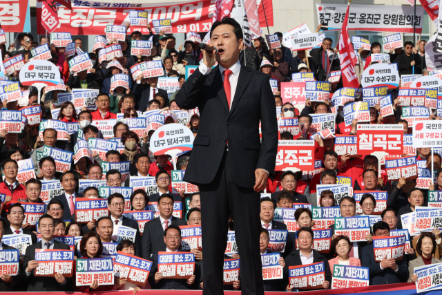 당원들의 환호 속에 단상에 오른 장동혁 대표는 앞선 장외집회 때 보인 모습과 마찬가지로 이 대통령에 대한 '대통령' 호칭을 생략한 채 강성 발언을 이어갔다. 장 대표는 "이재명은 그 존재 자체로 대한민국의 재앙"이라며 "법 앞에 예외 있다면 그것은 독재자다. 법 위에 서려고 하는 자가 있다면 그건 독재자다. 그래서 이재명은 독재자"라고 주장했다.