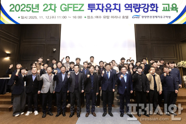 광양만권경제자유구역청(청장 구충곤)은 12일 전남 여수 유탑마리나호텔에서 직원 70여 명이 참석한 가운데 '2025년 하반기 투자유치 역량강화 교육'을 실시했다고 밝혔다.