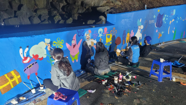 학생들은 기존 벽화 제거와 벽면 보수, 밑색 도포, 벽화 채색 등 전 과정을 맡아 낡고 빛 바랜 벽을 새롭게 단장했다.
